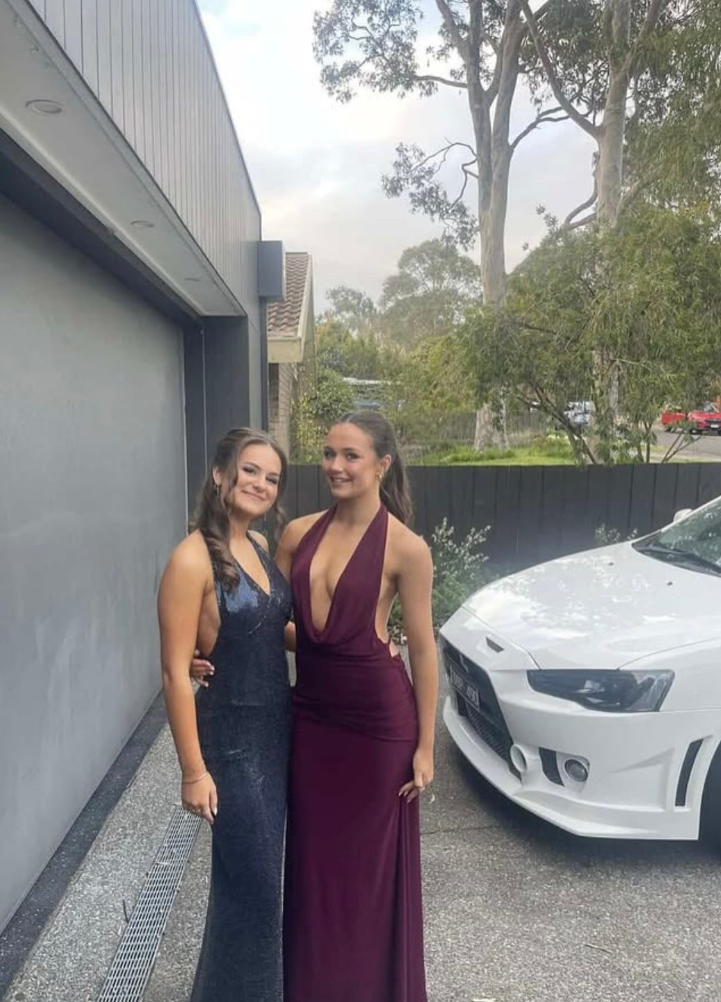 Can be worn 2 different ways, as a V neck or off the shoulders. Featuring a deep cowl neckline, backless design and adjustable sash. Designed to stretch and contour the body. In burgundy.